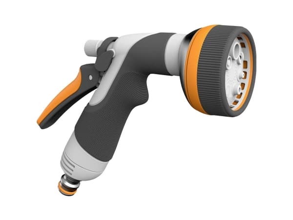 Stevig broespistool met een duurzame metalen behuizing, comfortabele soft touch-trigger en handgreep, en een robuuste metalen sproeikop. Sluit het moeiteloos aan op een standaard slangstuk en kies uit 8 verschillende sproeistanden door de kop met een klikmechanisme te draaien.