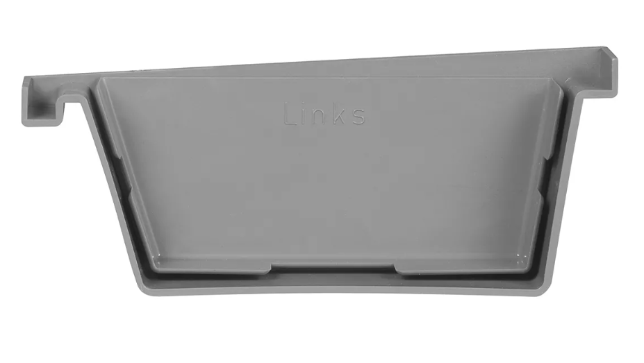 Het PVC bakgoot eindstuk links zorgt voor een strakke en waterdichte afsluiting aan de linkerzijde van de bakgoot. Dit onderdeel voorkomt dat water uit de goot loopt en draagt bij aan een nette afwerking van het gootsysteem.
