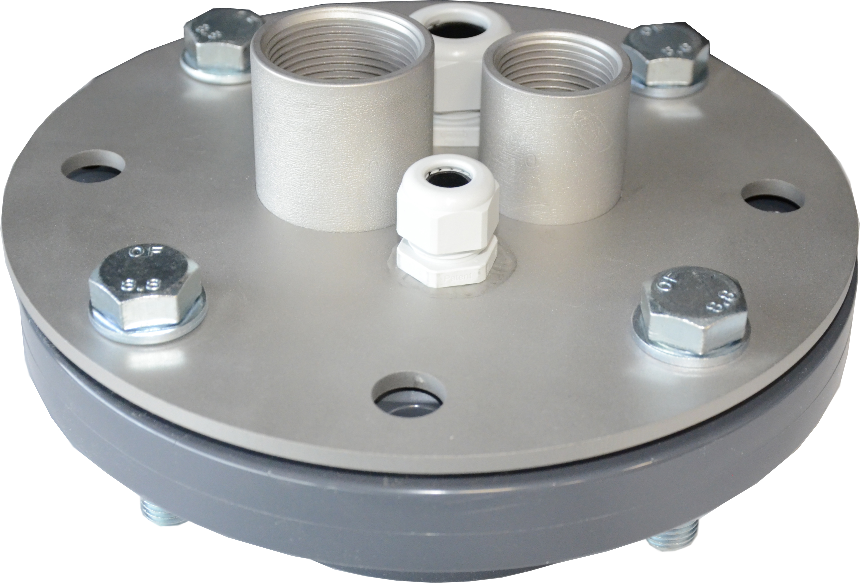 Peilgat putdeksel 125 mm diameter compleet geleverd met afdichtrubber. 4 bouten. pompaansluiting 1 1/4. peilgat 1" en 2x kabeldoorvoer 3/4"- 1/2". Bovenkap RVS 316