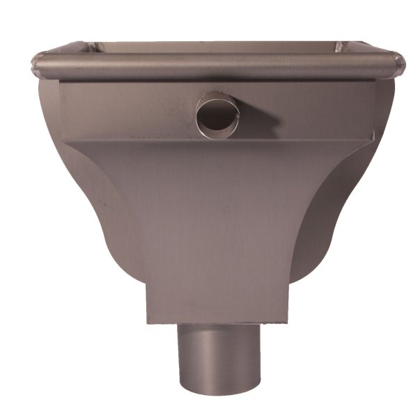 Gebruik Vergaarbak - NedZink Nova - Zinkunie - 80 mm voor het afvoeren van regenwater van een plat dak. De vergaarbak is uitgerust met een geïntegreerde loden kiezelbak die voorkomt dat grind, bladeren en ander vuil in de afvoer terechtkomen. Dankzij de onderuitlaat met spie-einde kan de vergaarbak eenvoudig in een regenpijp worden geplaatst.