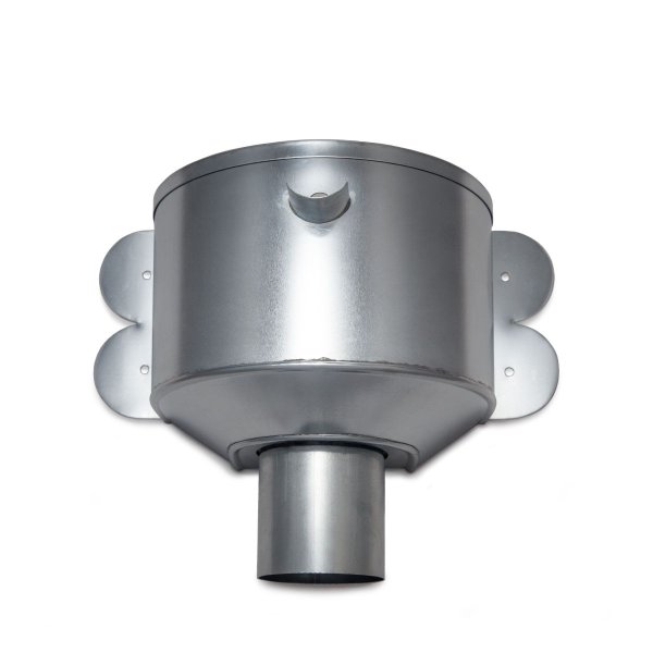 Gebruik de zinken Vergaarbak - Zink - Amsterdam - 80 mm voor het afvoeren van regenwater van een plat dak. De vergaarbak is uitgerust met een geïntegreerde loden kiezelbak die voorkomt dat grind, bladeren en ander vuil in de afvoer terechtkomen. Dankzij de onderuitlaat met spie-einde kan de vergaarbak eenvoudig in een regenpijp worden geplaatst.